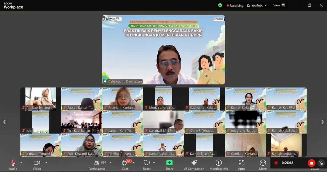 Webinar series keempat ini dimoderatori oleh Kepala Subbagian Pemantauan pada Biro Perencanaan dan Kerja Sama, Nugroho Dwi Rinaryanta. Peserta pada webinar ini meliputi pegawai Kementerian ATR/BPN dari berbagai unit kerja, baik pusat maupun daerah. (ADV)
