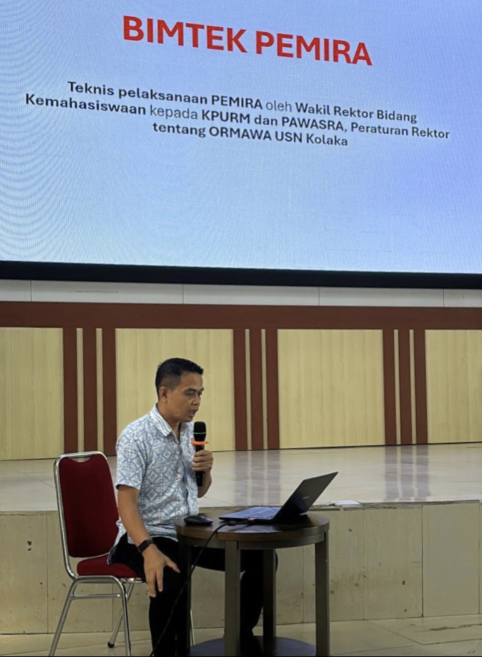Dia juga menjelaskan,pemilihan umum mahasiswa bukan hanya dilakukan di USN Kolaka, tetapi juga menjadi praktik umum di berbagai perguruan tinggi lainnya,oleh karena itu, mahasiswa diharapkan dapat mengikuti kegiatan bimbingan teknis (bimtek) ini secara serius agar mampu memahami dan melaksanakan pemilihan sesuai dengan ketentuan, prinsip demokrasi, serta nilai-nilai akademik yang berlaku.
